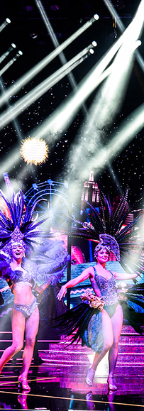 An extravaganza of passion and thrills features sensual performances, sexy and breathtaking artists from around the world - including dancers, acrobats, aerialists, skaters, ventriloquists, comedians, and the return of the iconic showgirls to the legendary Jubilee Theatre.